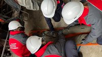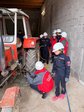 Mit Hebekissen und Unterbaumaterial wurde der Traktor angehoben und die Person sicher befreit.