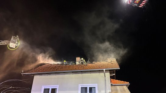Beim Eintreffen war die Lage zunächst unübersichtlich. Unser Atemschutztrupp des TLF wurde zur Unterstützung des Innenangriffs ins Gebäude beordert. Kurz darauf ordnete der bereits im Gebäude tätige Atemschutztrupp der Feuerwehr Hofkirchen an der Trattnach einen Rückzug an, da der Brand sich im Dachstuhl rasant ausbreitete.