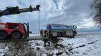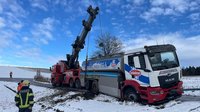 Ein Milchtransporter mit rund 10.000 Litern Ladung rutschte bei der Pauli Kapelle in Pöttenheim in den Straßengraben und drohte umzustürzen. Gemeinsam mit Landwirten, Polizei und dem Bergeunternehmen Hummer konnte der 18-Tonnen-LKW gesichert und schonend geborgen werden.